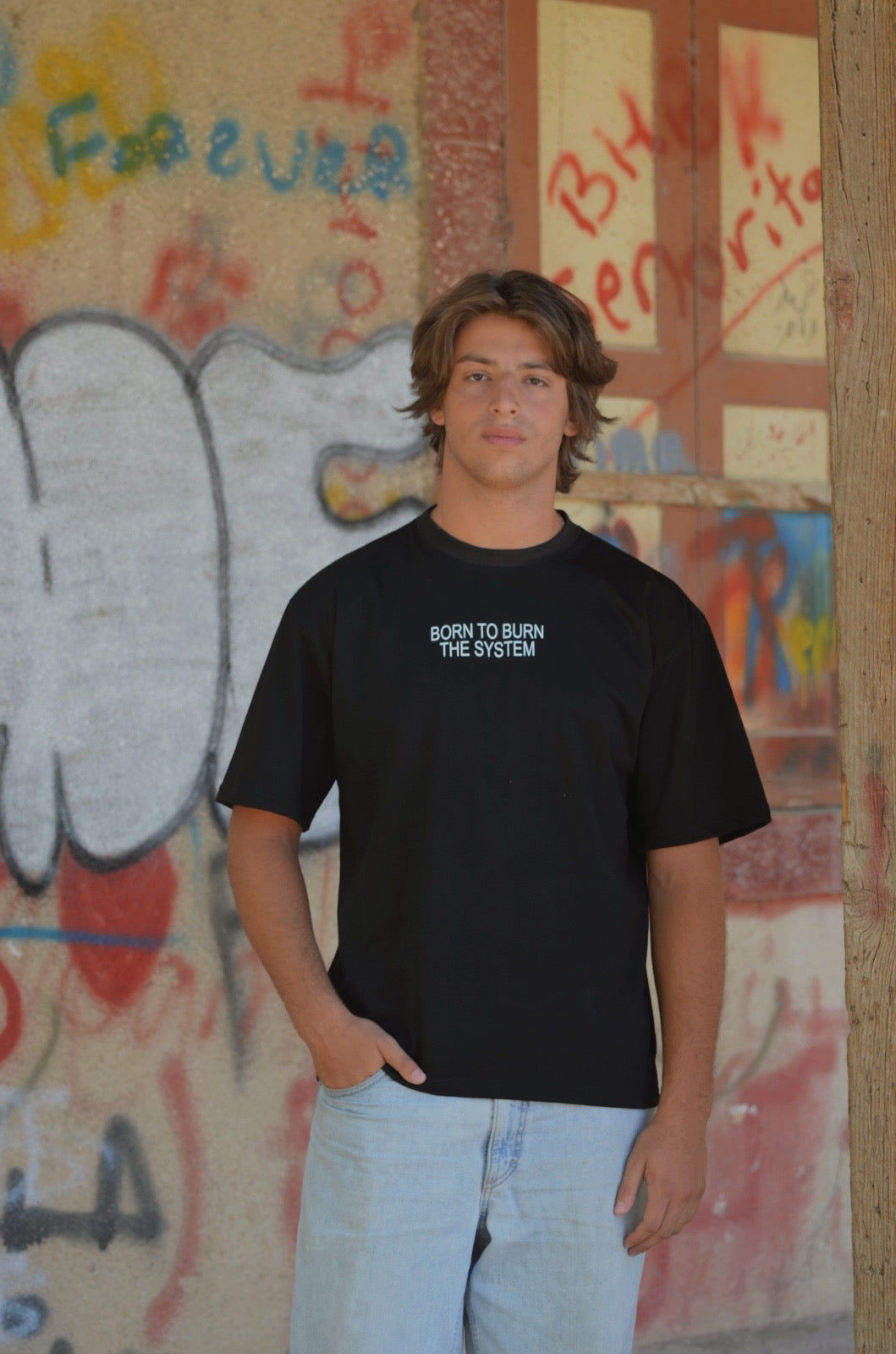 A statement piece born from chaos. Inspired by the Molotov, FLARE embodies ignition, resistance, and untamed fire. Crafted on premium lightweight cotton, the graphic captures both destruction and creation a spark against the silence.